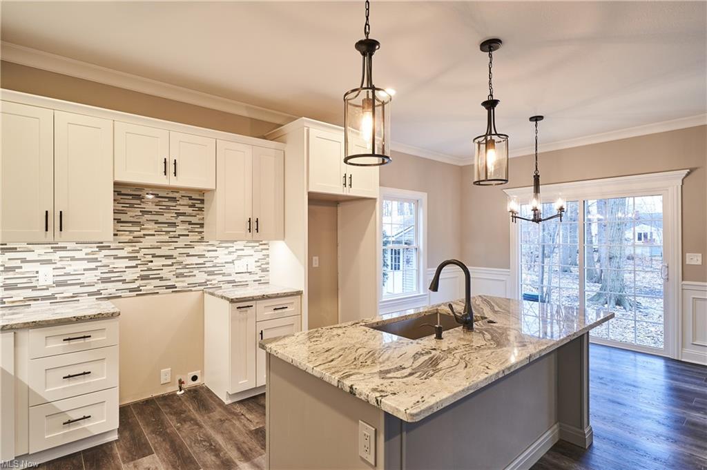 Sliders from the eat-in kitchen lead outside. Master bedroom with private bath, Three additional bedrooms, laundry room with granite countertop, and another full bath complete the upstairs.