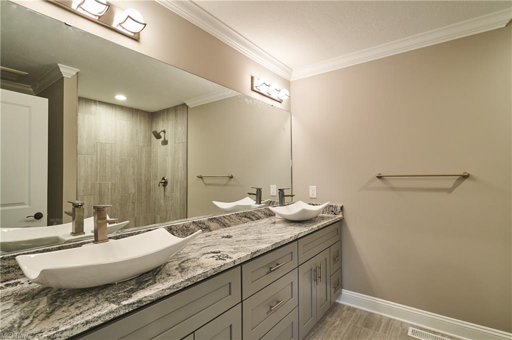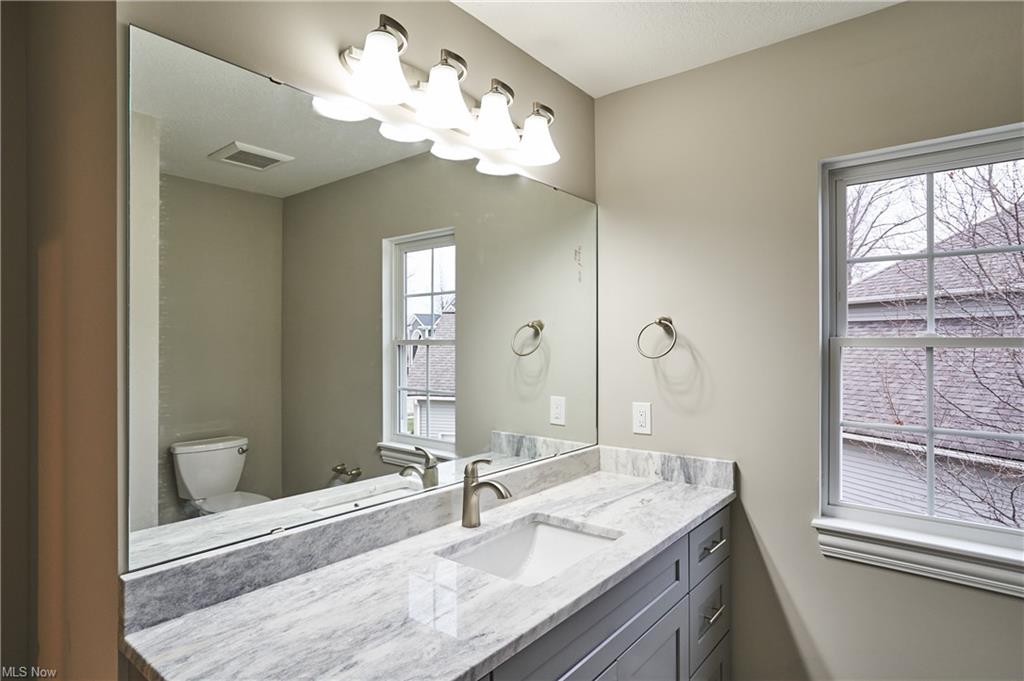All bathrooms feature granite countertops. Convenient first-floor half bath. Large basement with 9-foot ceilings is plumbed for a bath and could provide additional living space, hobby area, or storage.