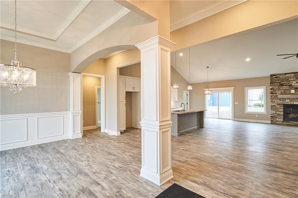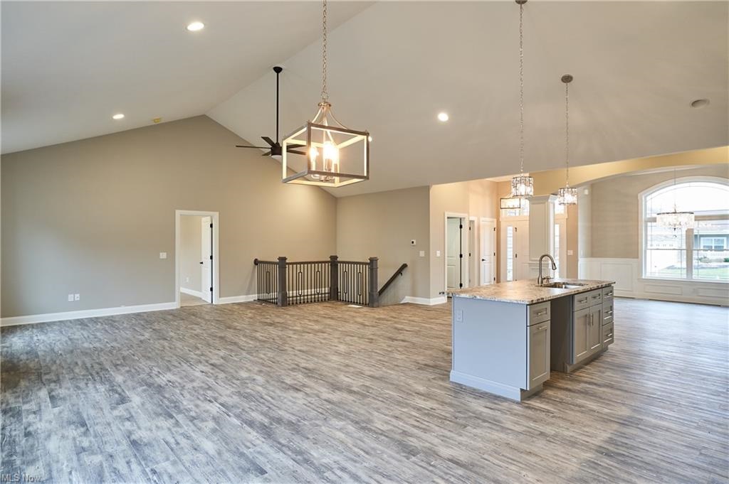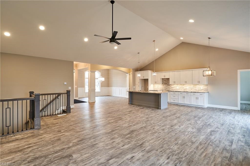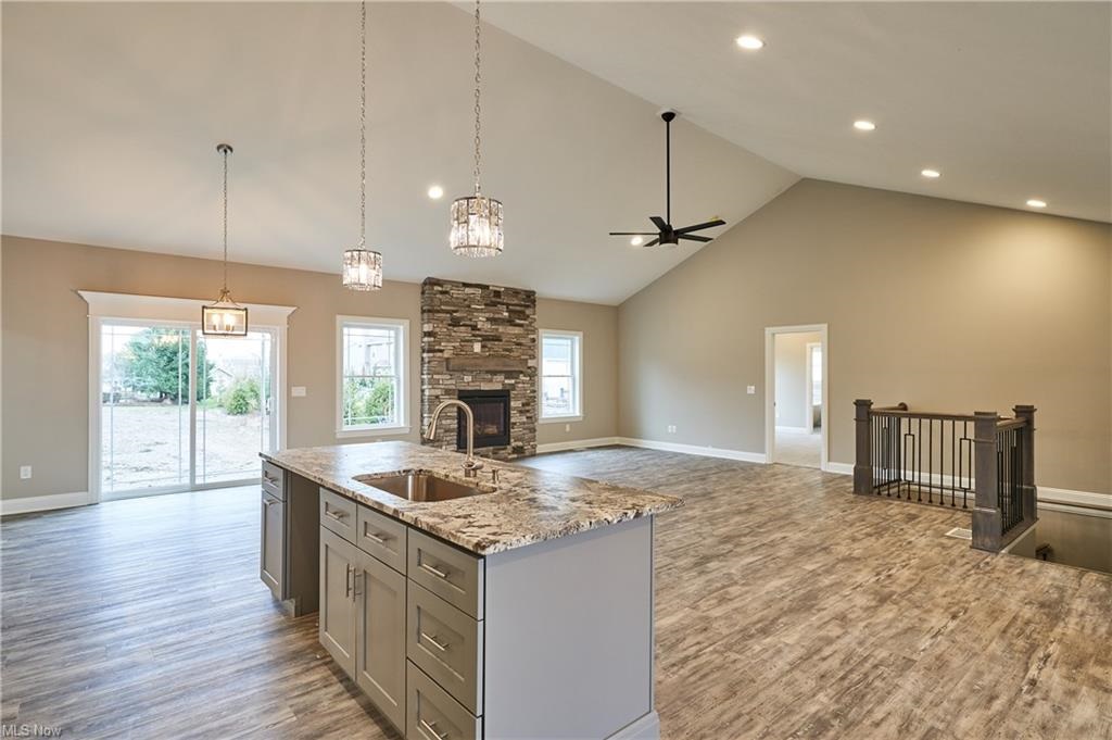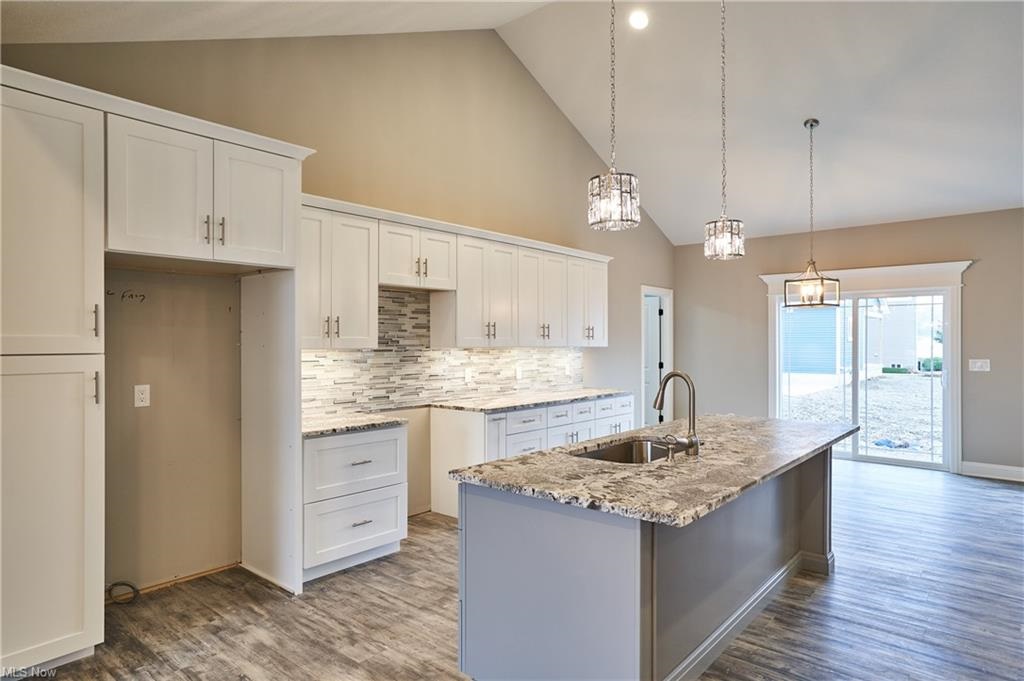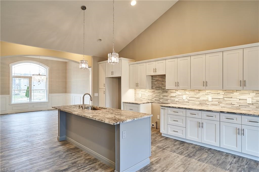 Contemporary Ranch with vaulted ceilings and an open floorplan. 3 Bedrooms and 2 1/2 baths. Eat-in kitchen features a center island with granite countertops and is completely open to the greatroom.